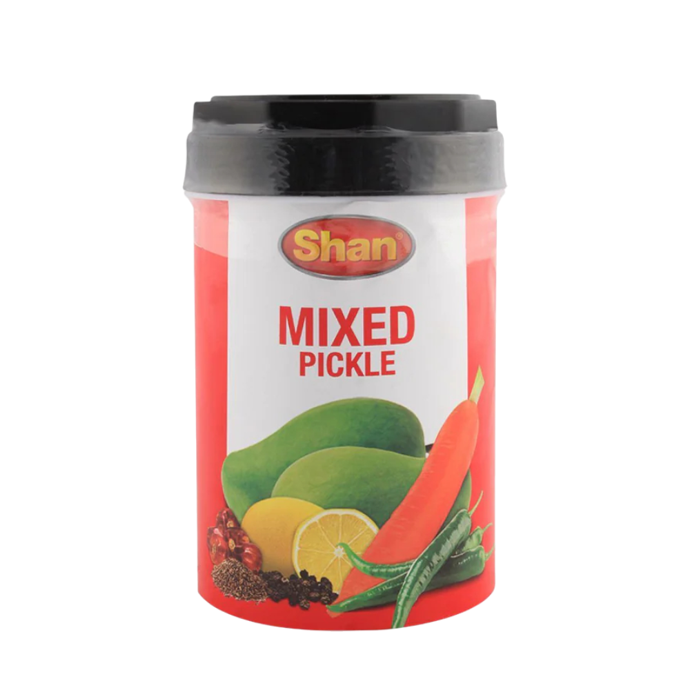 Shan Mixed Pickle, 1 kg is a traditional South Asian condiment featuring a flavorful assortment of hand‑cut vegetables preserved in a tangy, spicy, and aromatic blend of premium spices and oil. This generous 1 kg size is ideal for families and regular use, offering plenty to complement meals throughout the week. The balanced mix of heat, sourness, and spice enhances biryanis, rice, curries, rotis, parathas, and snacks, adding a burst of bold flavor to every bite. Carefully crafted to deliver authentic taste and texture, Shan Mixed Pickle brings rich, classic pickle goodness to your kitchen table.