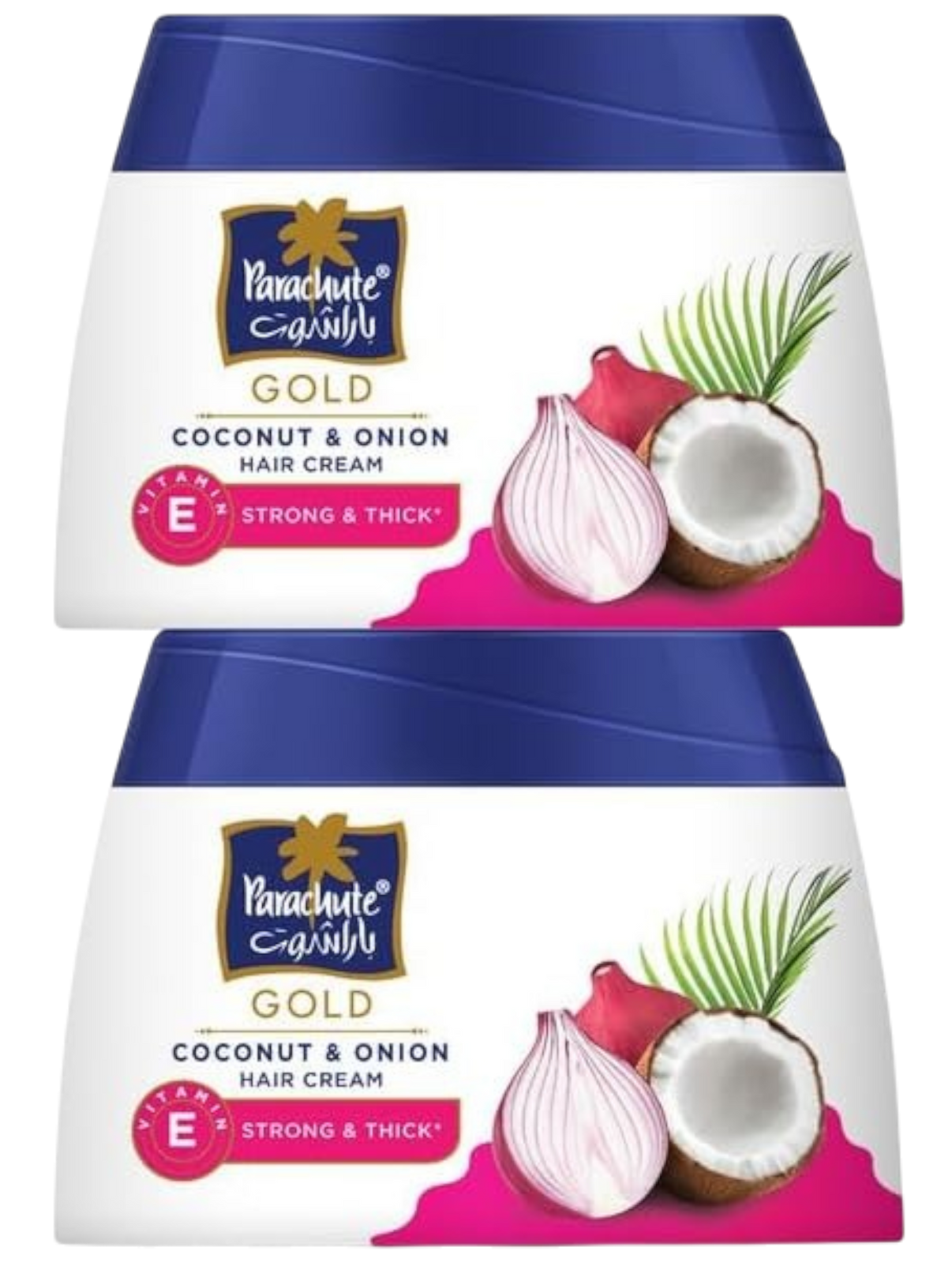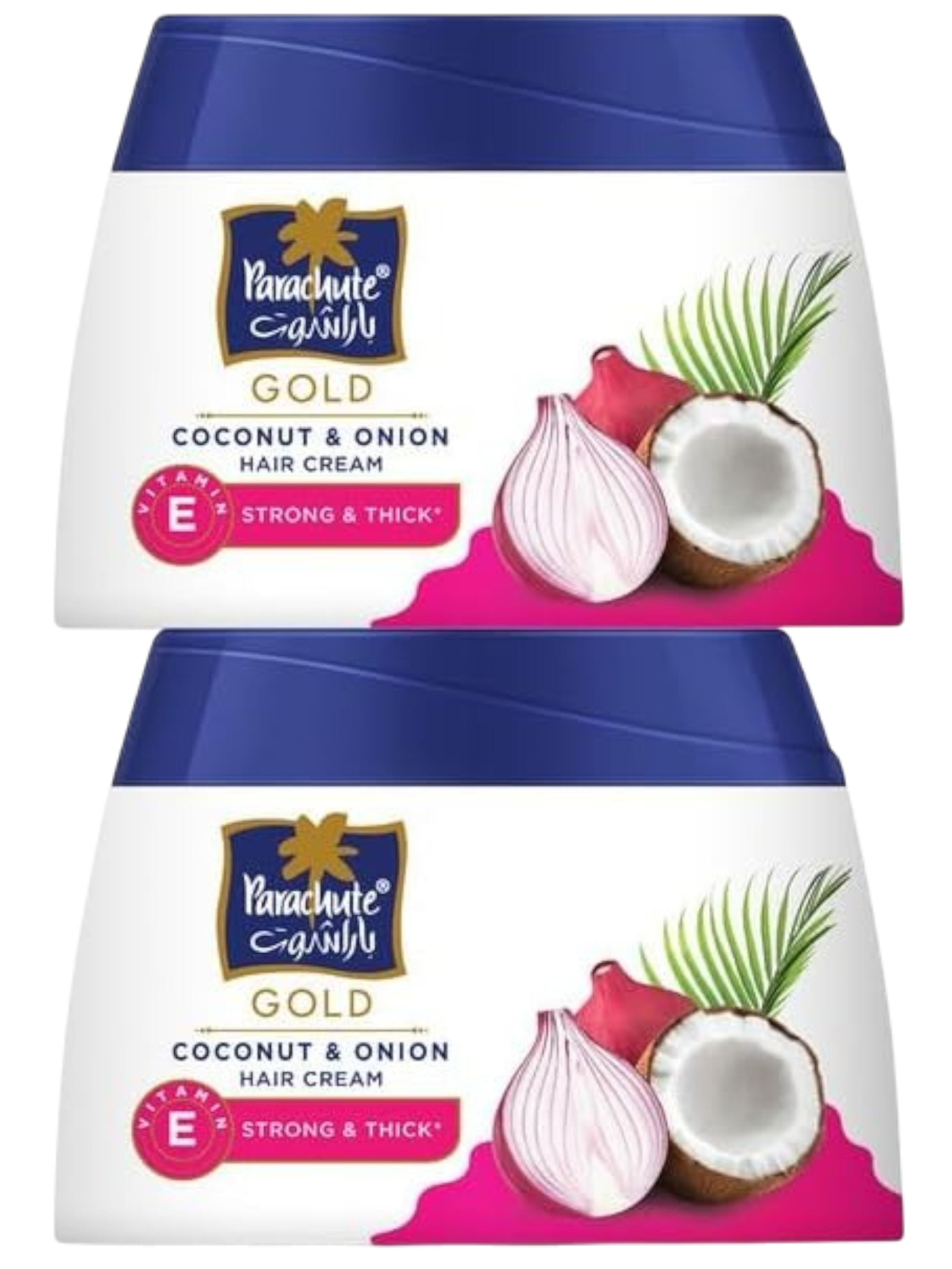 Revitalize your hair with Parachute Gold Coconut & Onion Hair Cream, enriched with the natural goodness of coconut and onion extracts. This nourishing formula strengthens hair from root to tip, reducing breakage and promoting healthier, thicker strands. Its lightweight, non-sticky texture keeps hair soft, smooth, and manageable while adding a natural shine. Ideal for daily use, it helps combat hair fall and supports overall scalp health. The convenient value pack of 2 x 140ml ensures long-lasting care, making it perfect for men and women looking for stronger, shinier, and more resilient hair every day.