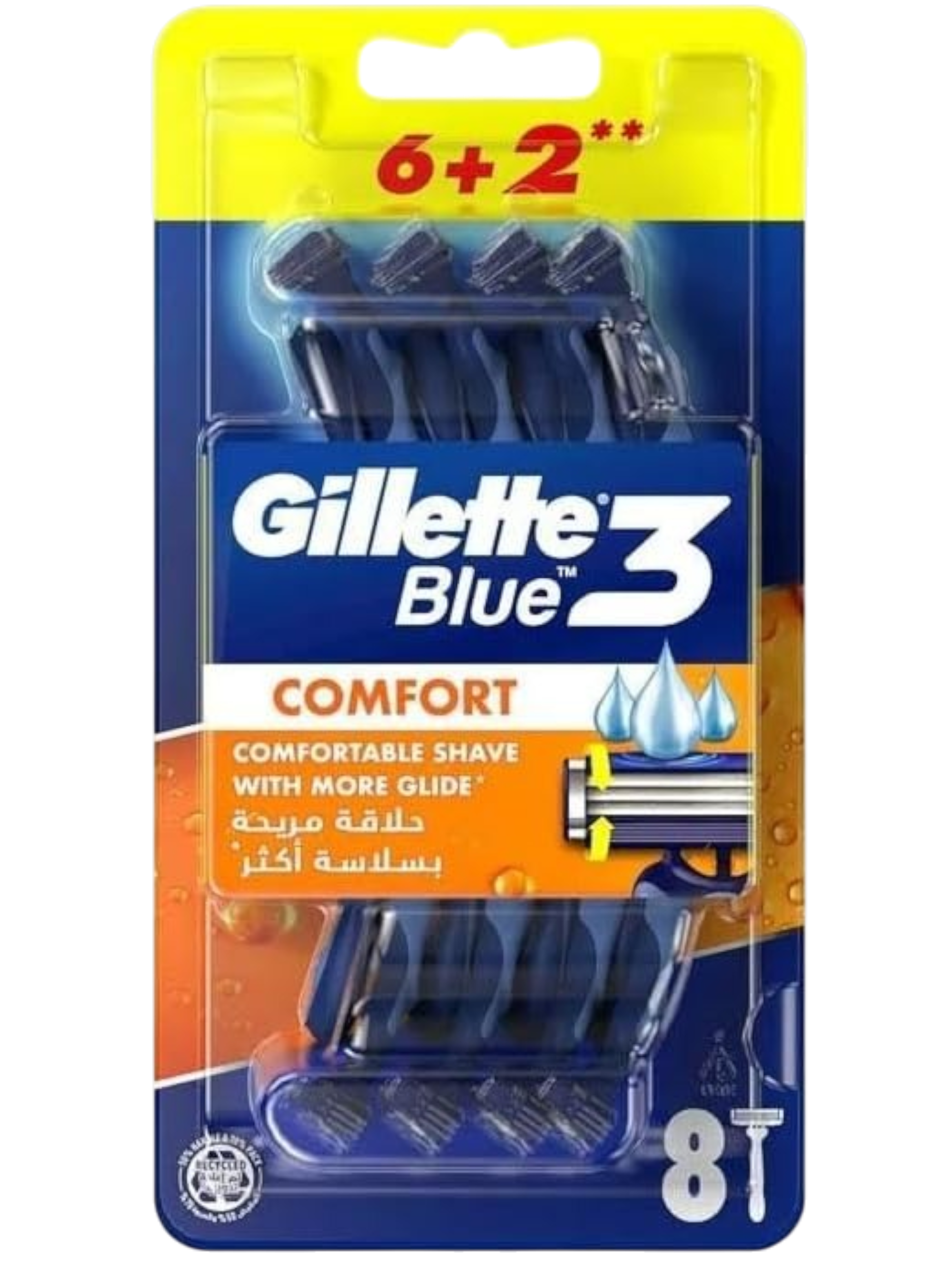 Achieve a smooth, close shave with Gillette Blue Comfort 3‑Blade Shaving Razors. This value pack of 8 razors delivers reliable performance with three sharp blades and a comfort gel strip that helps reduce irritation for a gentler glide on your skin. Designed for everyday shaving, the comfort gel keeps skin feeling soft and protected while the ergonomic handle ensures easy control and precision. Perfect for legs, face, or body grooming, these disposable razors offer convenience and lasting comfort. Stay clean‑shaven and confident with Gillette Blue Comfort 3‑Blade Razors—ideal for your daily routine or travel.