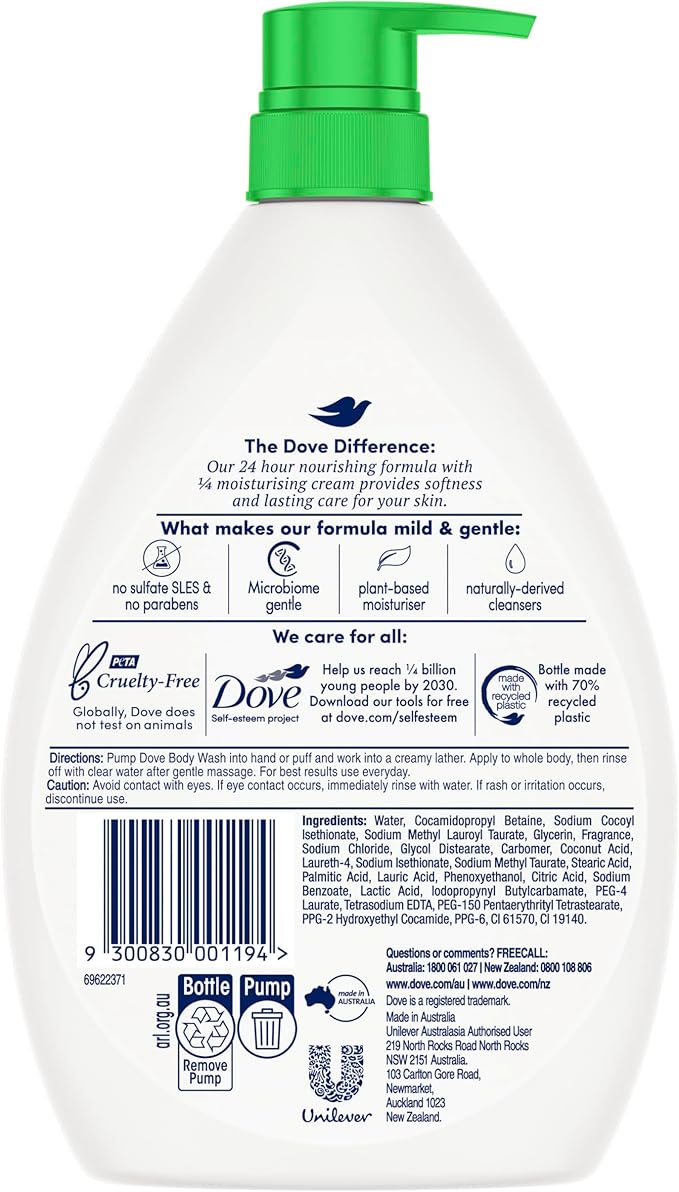 A refreshing shower is a great way to start your day off right, and a hydrating body wash can help you to nourish your skin at the same time. That’s why we’ve created Dove Go Fresh Touch Nourishing Cucumber and Green Tea Body Wash, a nourishing body wash with a light, refreshing cucumber and green tea scent to give you a body wash that leaves your skin feeling fresh and hydrated. This mild body wash, with NutriumMoisture technology, combines gentle cleansers with skin natural nutrients to give you softer & smoother skin. And with Dove Go Fresh Touch Nourishing Cucumber and Green Tea Body Wash, all of that comes along with an uplifting scent to revitalize your senses and help kick-start your morning. Simply squeeze a generous amount of body wash onto your hands or a shower puff and enjoy the lather and refreshing scent before rinsing.