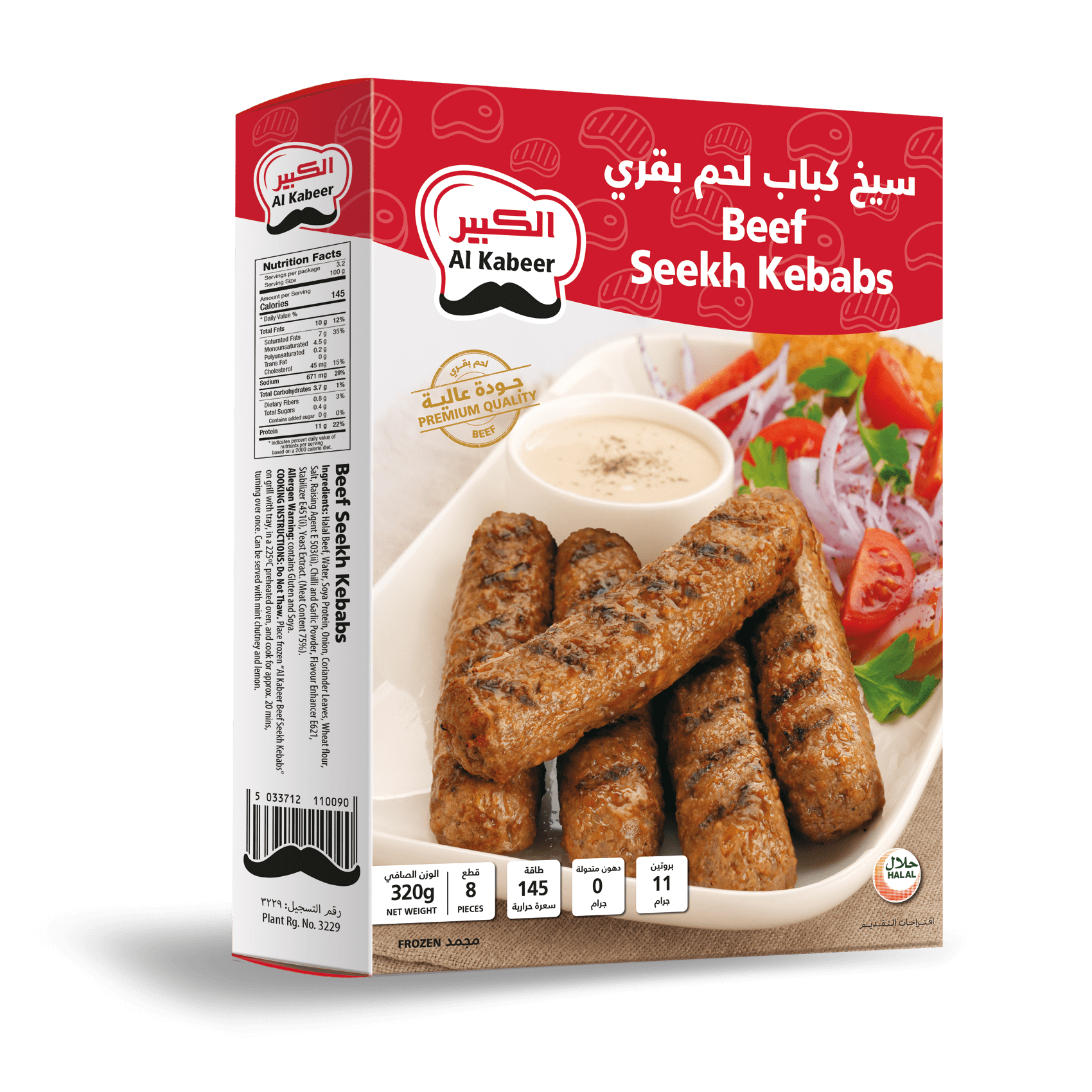 Al Kabeer Beef Seekh Kabab, 320g is a premium ready-to-cook kabab made from high-quality minced beef blended with authentic spices for rich, savory flavor. Shaped on skewers, these kababs offer a juicy, tender interior with a perfectly seasoned exterior, capturing the traditional taste of Middle Eastern cuisine. The 320g pack is ideal for family meals, gatherings, or quick snacks. Easy to grill, bake, or pan-fry, Al Kabeer Beef Seekh Kabab ensures consistent taste, texture, and quality every time. Serve with bread, rice, or salads for a convenient and delicious meal full of authentic flavor.