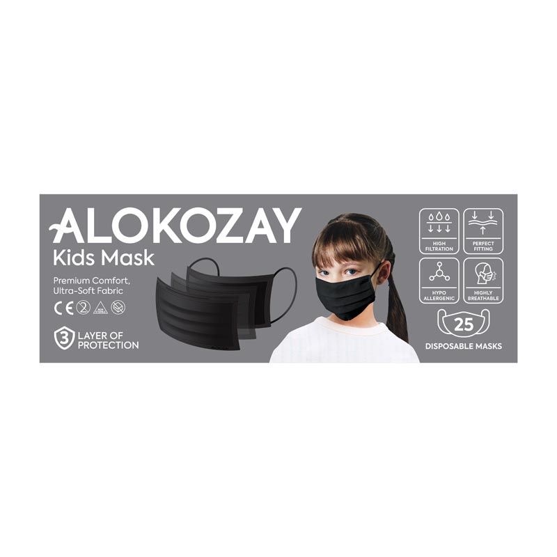 Alokozay Kids Face Mask Black, 25 Pieces