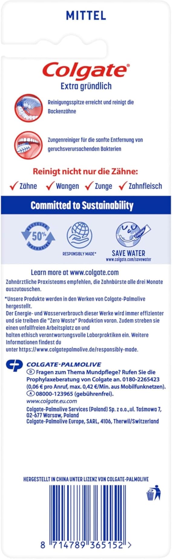 Maintain superior oral hygiene with the Colgate Extra Clean Medium Toothbrush, 3 Pack. Designed with medium-strength bristles, it effectively removes plaque and food particles while gently cleaning teeth and gums. The ergonomic handle provides a comfortable grip for precise brushing, ensuring thorough cleaning of hard-to-reach areas. Ideal for daily use, it helps keep teeth healthy, gums strong, and breath fresh. This 3-pack ensures long-lasting value and convenience for home use. Suitable for adults and teens, Colgate Extra Clean Medium Toothbrush delivers reliable, gentle, and effective cleaning, making it an essential tool for maintaining optimal oral care every day.
