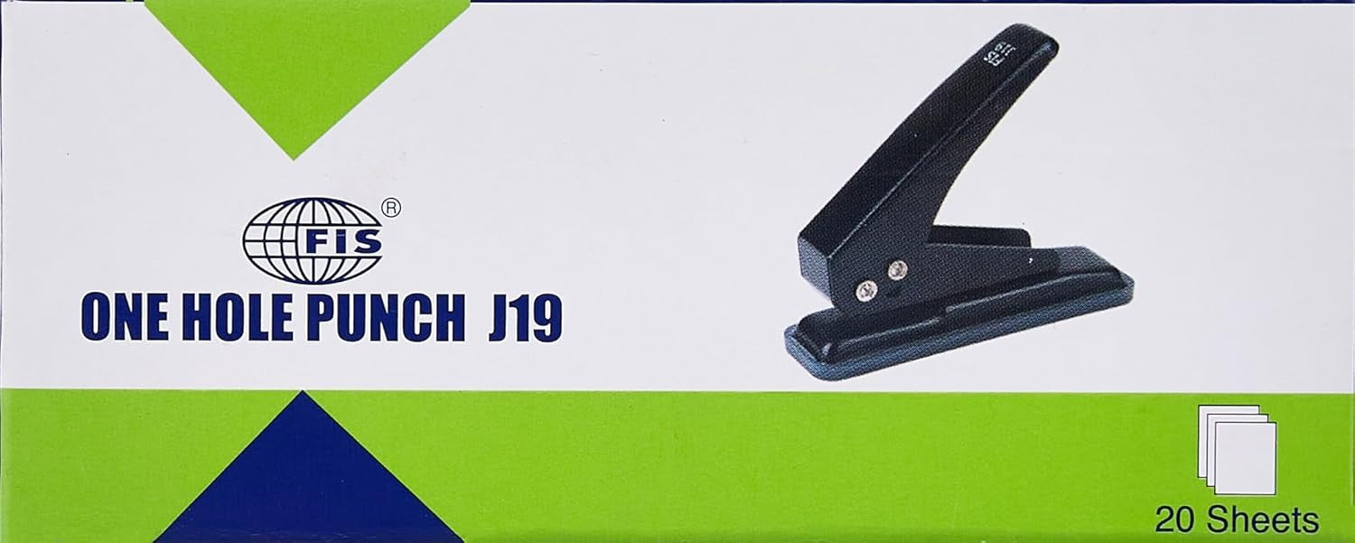 The FIS J19 Hole Punching Machine is a sturdy and efficient office tool designed for clean and accurate paper punching. Built with durable metal construction, it delivers reliable performance for everyday office, school, or home use. The sharp punching mechanism creates precise holes with minimal effort, making document filing quick and convenient. Its compact design saves desk space while remaining easy to handle and store. Equipped with a paper guide for proper alignment and a waste tray for easy cleanup, this hole punch ensures neat and organized results. The FIS J19 Hole Punching Machine is ideal for maintaining files, reports, and documents efficiently and professionally.