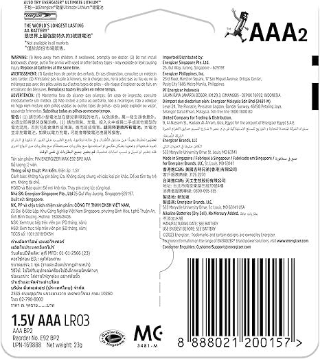 Keep your devices powered reliably with Energizer 1.5V AAA Alkaline Power Batteries, 2 per pack. These high-performance batteries deliver long-lasting energy for everyday gadgets such as remote controls, clocks, toys, and flashlights. Designed with Energizer’s advanced alkaline technology, they provide consistent power, reducing the need for frequent replacements. Compact and lightweight, the AAA size is ideal for small electronic devices while ensuring maximum convenience. With dependable performance in both high-drain and low-drain devices, these batteries are a must-have for home, office, or travel. Trust Energizer to keep your essential devices running smoothly whenever you need them.