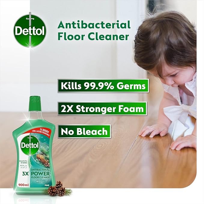 Dettol Antibacterial 3X Power Floor Cleaner kills 99.9 Percent of germs. It cleans, disinfects, foams and be used on all hard surfaces including kitchens, bathrooms, floors. It's designed to remove 100 stains, provides 2X foam and 24 hours long lasting fragrance. It comes in 8 different variants leaving your home smelling fresh. For best results do not mix with any other product. Refer to pack for usage guidelines and dilution details