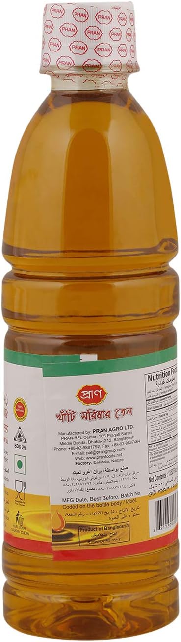 Pran Mustard Oil, 400ml, is a high-quality, aromatic cooking oil made from carefully selected mustard seeds. Its bold, traditional flavor enhances the taste of curries, pickles, marinades, and fried dishes, bringing authentic desi aroma to every meal. Perfect for everyday cooking, this 400ml bottle offers the ideal quantity for small to medium households while maintaining freshness and purity. Known for its natural properties and rich taste, Pran Mustard Oil is widely used in South Asian kitchens to add depth and flavor to both vegetarian and non-vegetarian dishes. Hygienically packed for consistent quality and aroma.