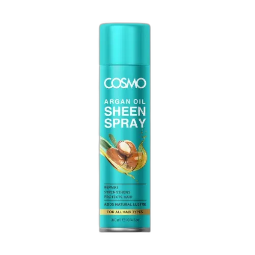 Enhance your hair’s natural shine with COSMO AFRGAN Sheen Spray. This lightweight formula adds a radiant, healthy-looking glow while controlling frizz and flyaways for a polished finish. Perfect for daily use, it revitalizes your hair with a smooth, glossy touch that lasts all day.