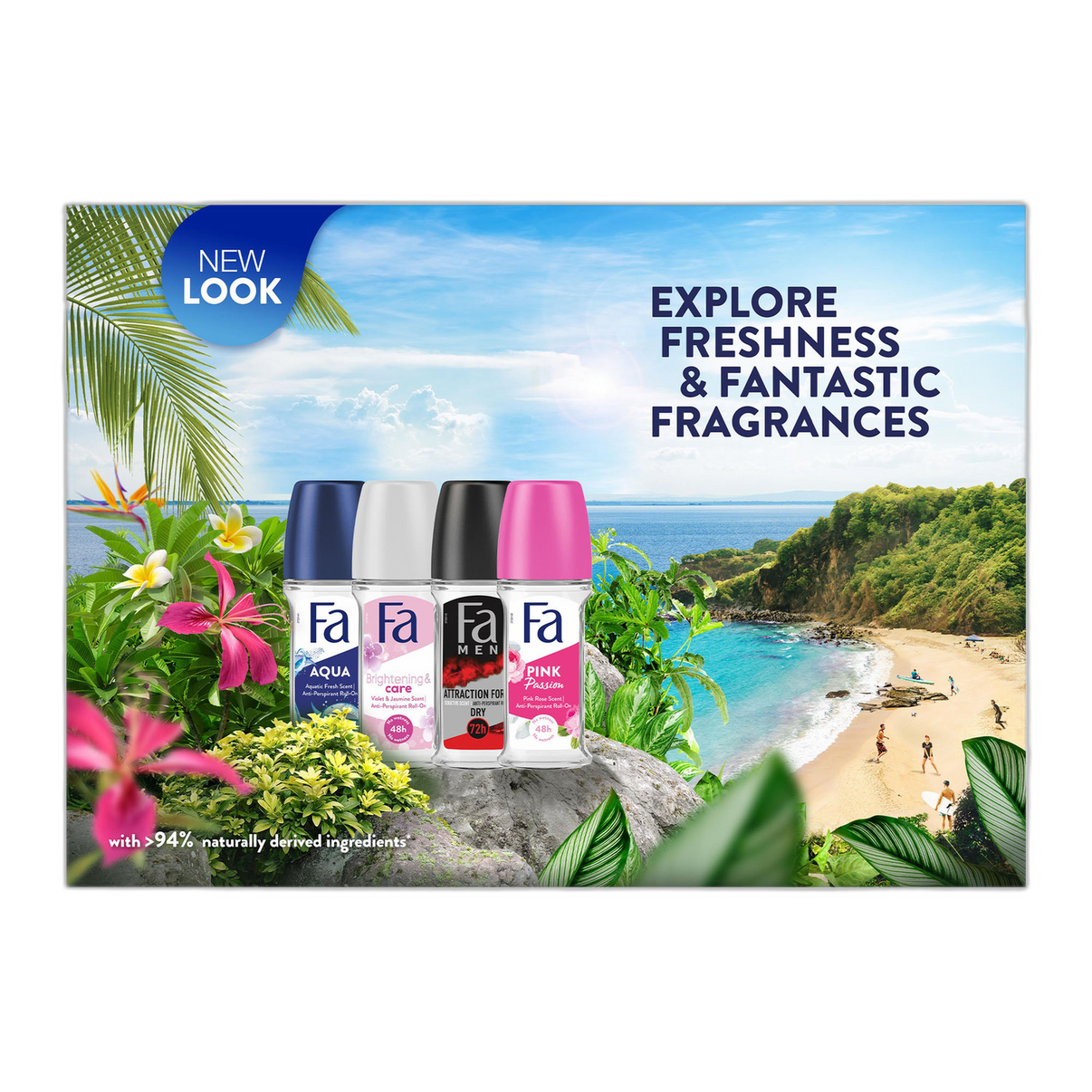 Experience a refreshing burst of hydration with the FA Aqua Roll On 50ml. Its lightweight, fast-absorbing formula helps keep you feeling fresh and confident throughout the day. Compact and easy to apply, it’s the perfect companion for on-the-go freshness and effective odor protection.