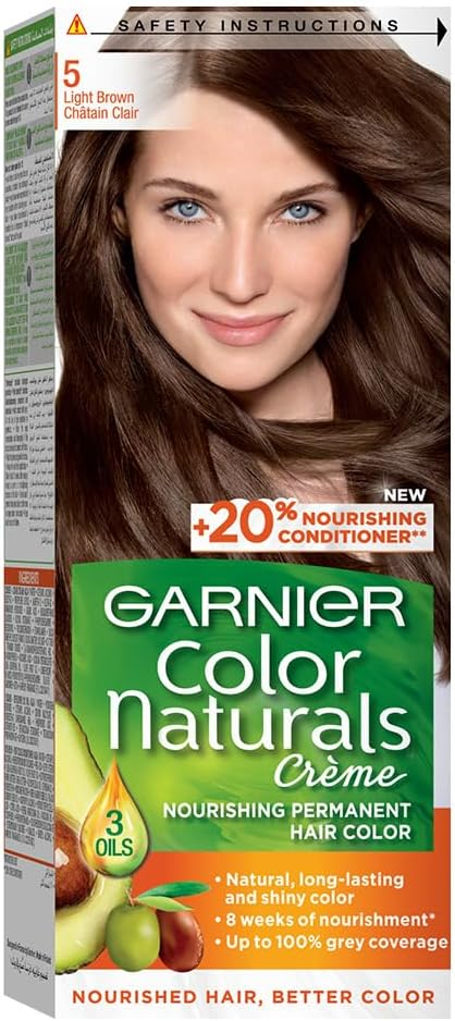 Refresh your look with Garnier Hair Color 5 Light Brown, delivering rich, natural-looking tones that blend seamlessly with your hair. Enriched with nourishing ingredients, it helps enhance shine and softness while providing long-lasting color. Achieve salon-quality results at home for a vibrant, confident finish.