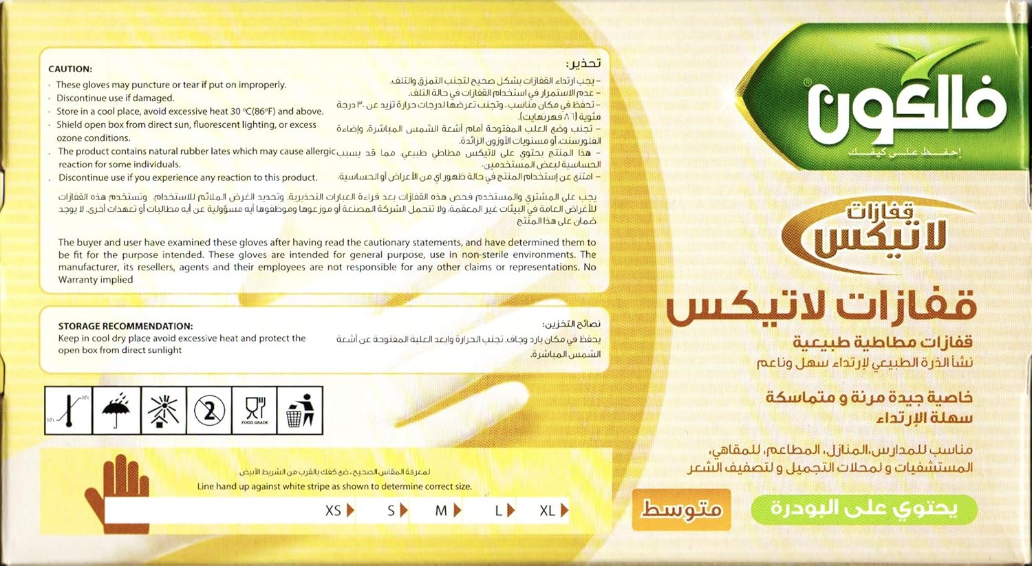 Falcon Latex Gloves – Medium (100 Pieces) are high‑quality disposable gloves designed to provide reliable protection and comfort for a wide range of tasks. Made from natural latex, these gloves offer excellent elasticity, a snug fit, and superior tactile sensitivity, making them ideal for medical examinations, laboratory work, cleaning, food handling, and everyday chores. The medium size fits most adult hands comfortably, while the smooth surface allows precise handling without sacrificing durability. Easy to put on and remove, they help protect against dirt, germs, and light chemicals. With 100 gloves in a pack, you’ll have a dependable supply for home, workplace, or professional use.