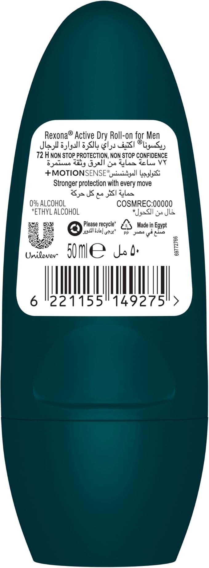 Rexona Men Antiperspirant Deodorant Roll on delivers nonstop protection to keep you feeling unstoppable. This antiperspirant deodorant roll on offers 72-hour protection and goes on instantly dry, so you can keep moving. Our Active Dry Antiperspirant Deodorant Roll On features our breakthrough MotionSense® technology that doesn’t stop working no matter how much you move. Our MotionSense® technology keeps you fresh and more protected with stronger protection against sweat vs. a regular antiperspirant. It works with unique microcapsules that sit on the surface of your skin. This powerful antiperspirant deodorant responds when you need it most, so that you can stay confident without having to worry about slowing down.