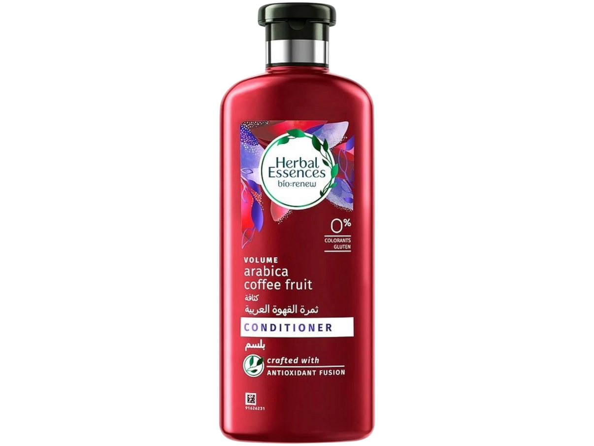 Herbal Essences Bio:Renew Volumizing Hair Conditioner with Arabica Coffee & Fruit, 400ml is a nourishing conditioner designed to add body, shine, and bounce to your hair. Infused with antioxidant-rich Arabica coffee and natural fruit extracts, it helps strengthen and hydrate each strand while boosting volume and fullness. Free from harsh chemicals, it leaves hair soft, manageable, and refreshed with a delightful, invigorating fragrance. Perfect for daily use, this 400ml bottle delivers salon-quality results at home. Herbal Essences Bio:Renew Volumizing Conditioner is ideal for fine or flat hair, giving it natural volume, vitality, and a healthy, radiant look.