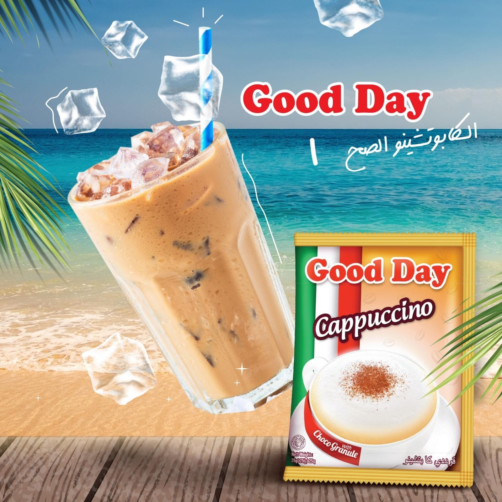 Start your morning right with GOOD DAY CAPPUCCINO, a rich and creamy blend crafted to lift your spirits. Each convenient 20x25gm pack offers the perfect balance of smooth coffee and frothy goodness, making it easy to enjoy café-quality cappuccino anytime. Energize your day with a comforting, flavorful treat that fits seamlessly into your busy lifestyle.