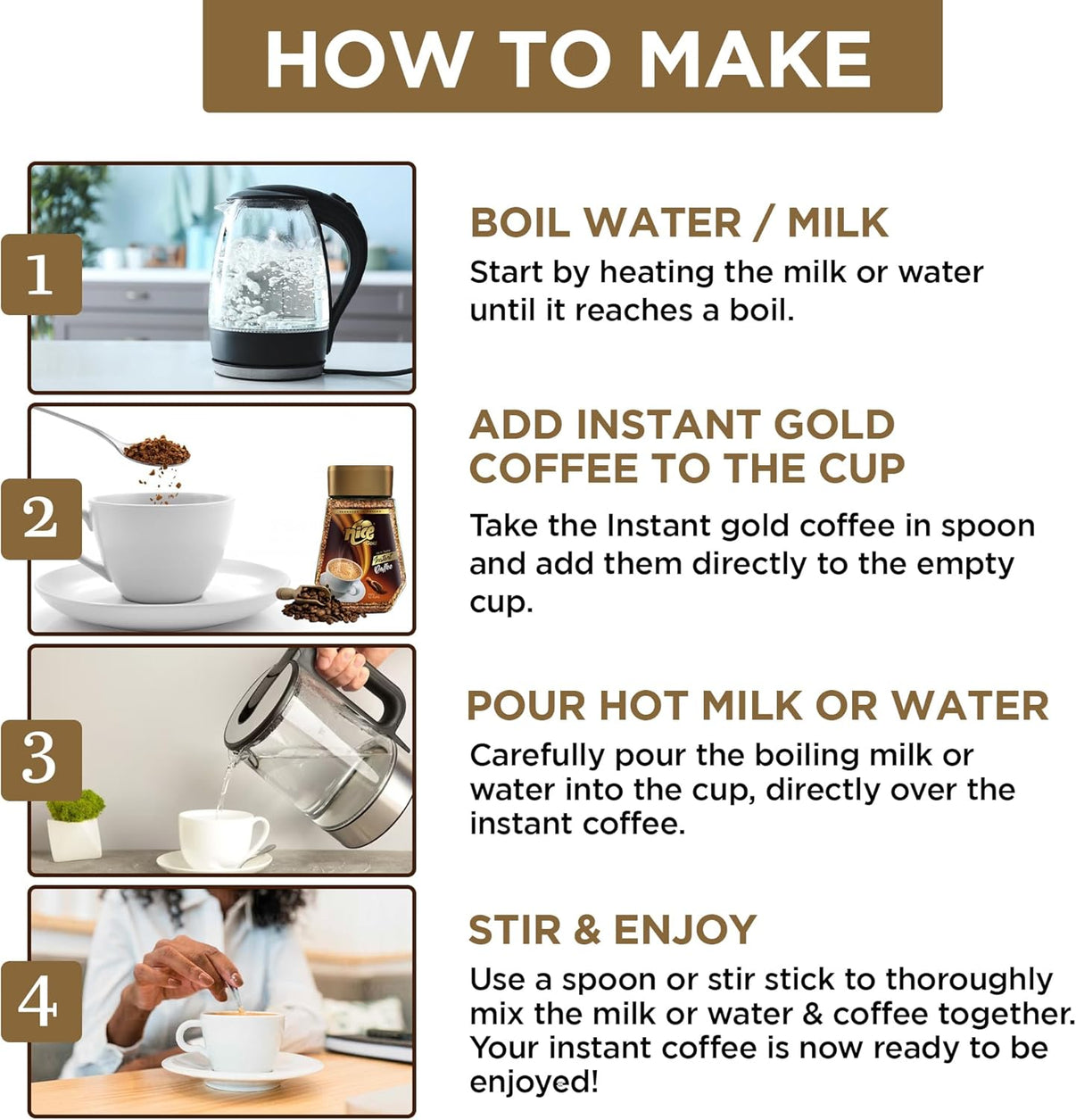 Experience the luxurious flavor of Nice Gold Rich Taste Coffee, carefully crafted for coffee lovers who appreciate quality in every cup. This 200g pack delivers a perfectly balanced blend of rich aroma and smooth taste, providing an indulgent coffee experience. Each sip reveals deep, full-bodied notes with a subtle hint of sweetness, creating a satisfying and energizing start to your day. Ideal for morning rituals or relaxing afternoons, this coffee is designed to awaken your senses and elevate your coffee moments. Easy to brew and consistently flavorful, it’s a must-have for anyone seeking premium coffee at home.