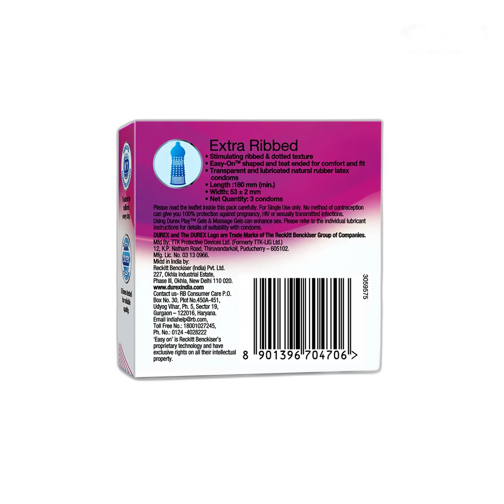 Enhance intimacy with Durex Extra Ribbed Condoms, designed to heighten pleasure for both partners. Featuring textured ribs for increased stimulation, they add an exciting dimension to your experience while providing trusted protection. Enjoy greater confidence and connection in every moment together.
