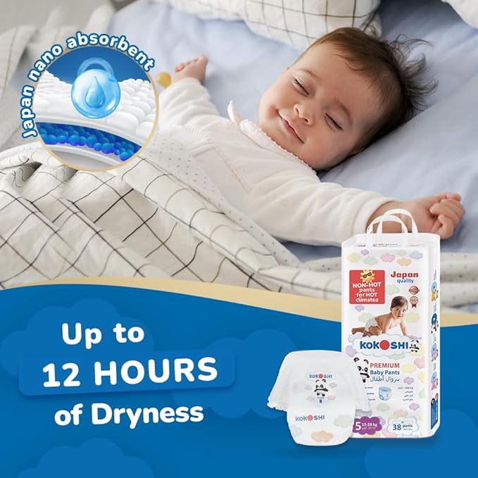 Keep your little one comfortable and dry with KOKOSHI Baby Diapers, designed for babies weighing 12-20kg. These diapers offer reliable absorbency and a soft, gentle fit to protect sensitive skin throughout the day and night. Made to provide hassle-free protection, they help parents enjoy more worry-free moments with their active toddlers.