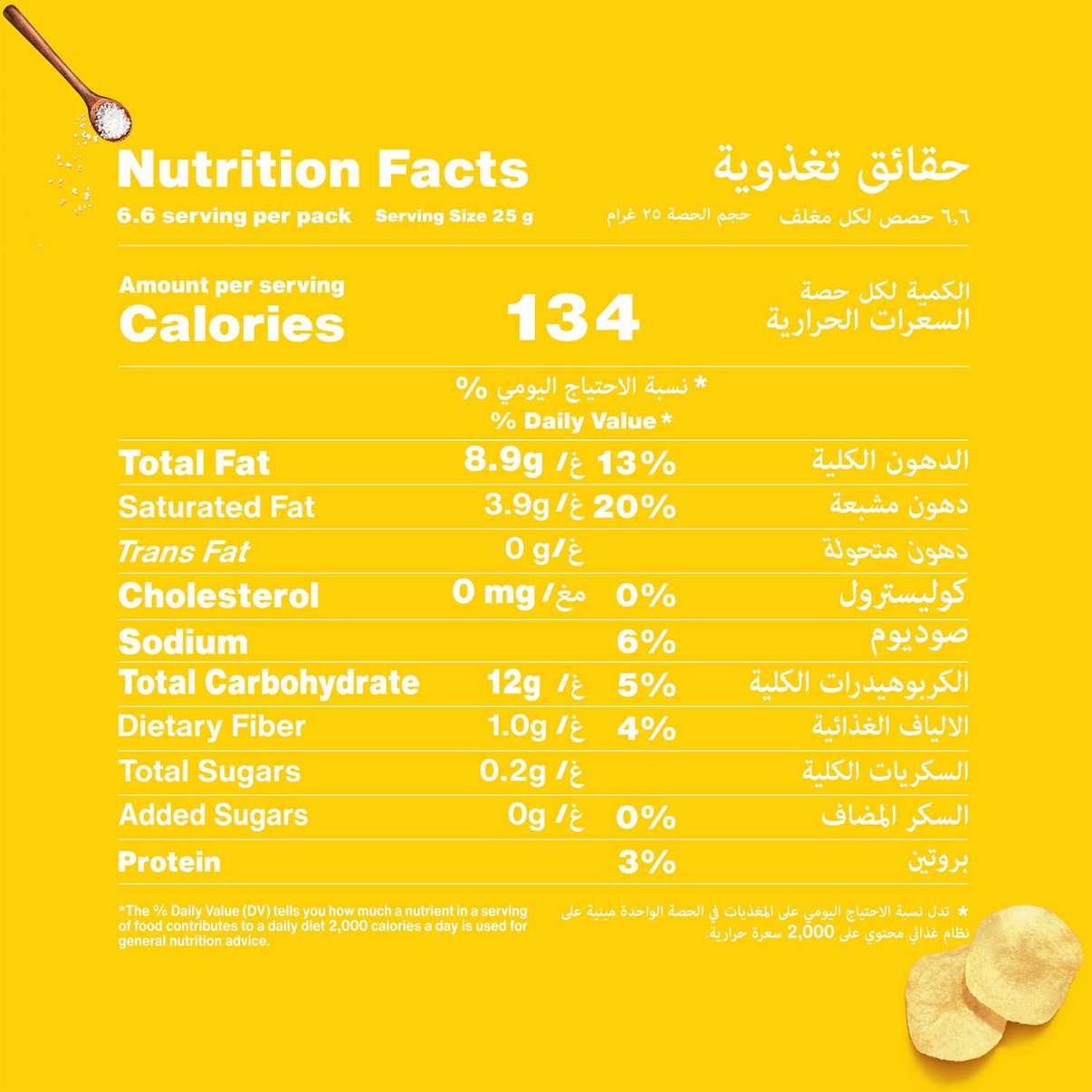 Enjoy the classic, crispy crunch of Lays Salt Chips in a convenient 170gm pack that's perfect for sharing or snacking on the go. Made from quality potatoes and lightly salted...