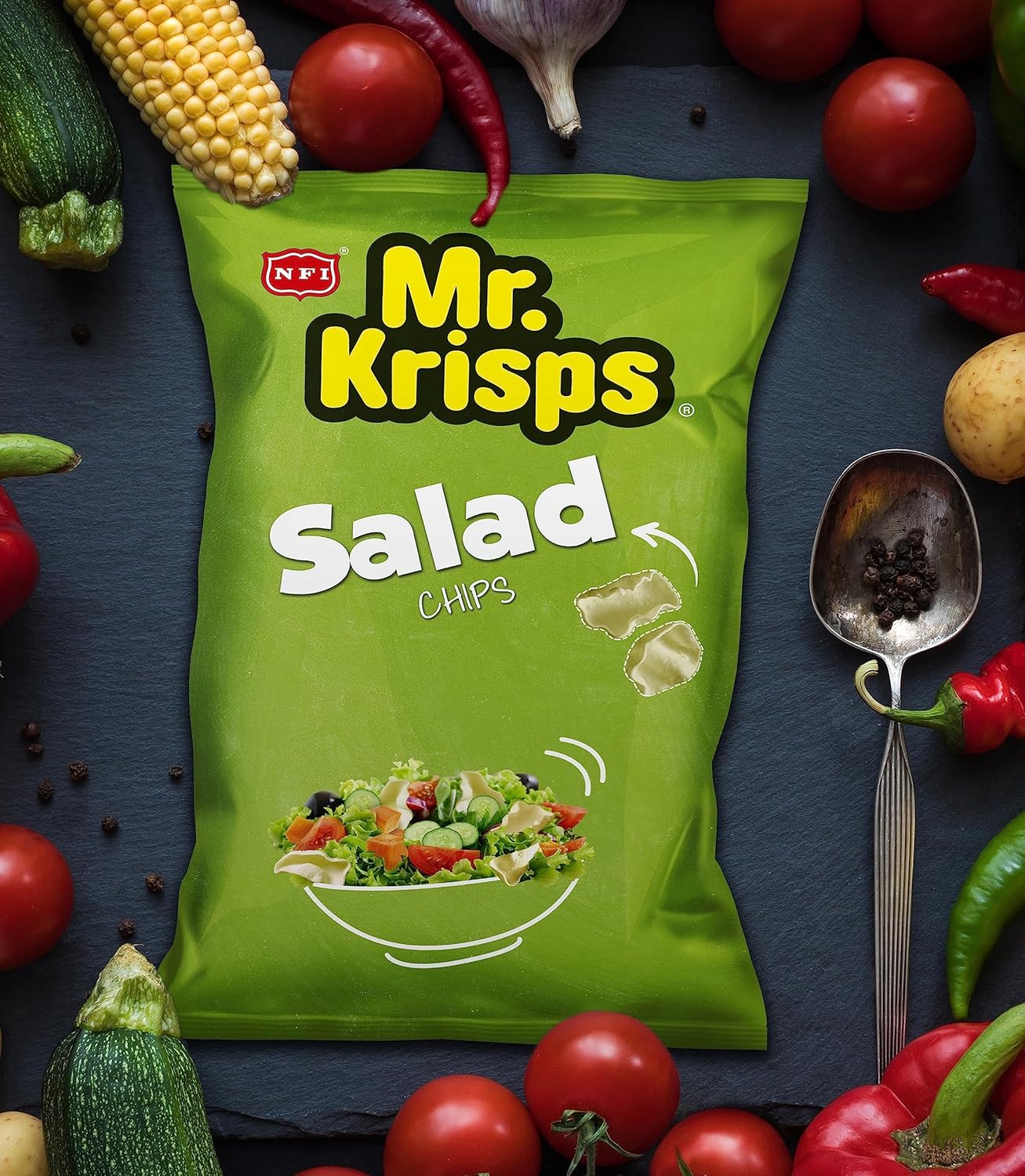 Enjoy a light and refreshing crunch with Mr. Krisps Salad Chips (21 x 12g). Made from quality potatoes and seasoned with a unique salad-flavored blend, these chips deliver a tasty mix of herbs and mild spices in every bite. Each 12g pack is perfectly portioned for quick snacking, lunchboxes, and sharing. Crispy, flavorful, and freshly packed, they are ideal for enjoying at home, school, work, or on the go. The convenient multipack ensures you always have a delicious snack ready. Mr. Krisps Salad Chips offer a satisfying crunch with a fresh, savory taste that makes every snack moment enjoyable.