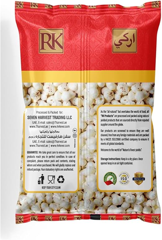 Enjoy a healthy, crunchy snack with RK Phool Makhana, crafted from premium fox nuts known for their natural goodness. Light and airy, this 100g pack offers a guilt-free treat packed with nutrients to keep you energized throughout the day. Perfect for mindful snacking that supports your well-being without compromising on taste.
