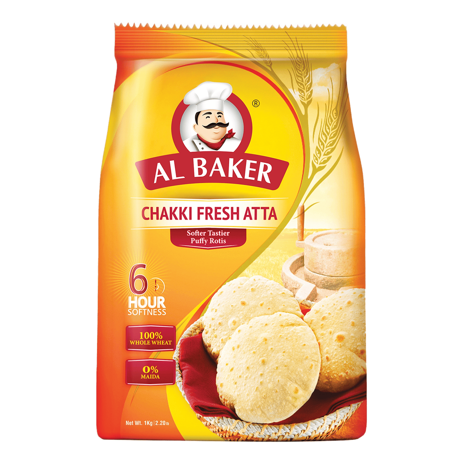 Enjoy the authentic taste of freshly ground whole wheat with AL BAKER Chakki Atta. Stone-milled using traditional chakki methods, this 1Kg atta preserves natural nutrients and provides a wholesome, rich flavor for your breads and rotis. Perfect for healthy homemade meals that bring the goodness of whole grain to your family’s table.