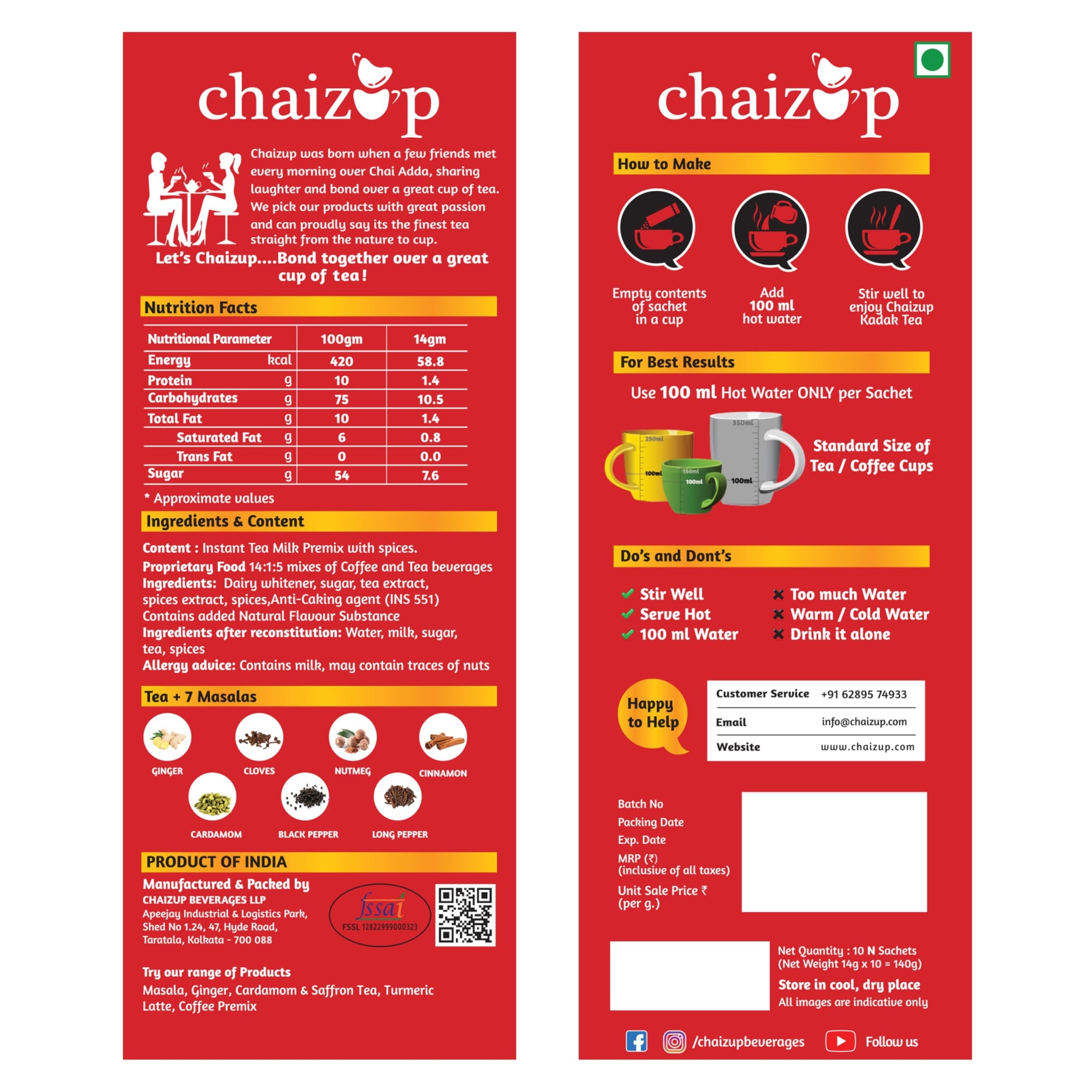 Experience the rich, traditional flavor of Karak tea anytime with CHAIZUP 3in1 KARAK TEA. Conveniently packaged in easy-to-use sachets, this blend combines tea, milk, and spices for a perfectly balanced, creamy cup in moments. Ideal for busy mornings or a cozy break, it brings authentic warmth and comfort with every sip.