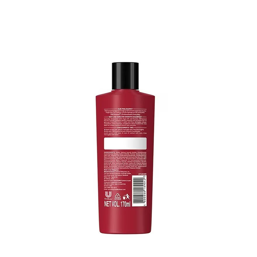 Reveal smoother, healthier hair with TRESemmé Keratin Shampoo. Infused with keratin, it helps strengthen and nourish your strands while gently cleansing, leaving your hair soft, shiny, and manageable. Perfect for everyday use, it transforms frizz into sleek, salon-quality results.